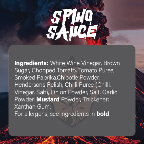 Imagine a rich, smoky BBQ sauce… Spino-sauce is the perfect blend of sticky sweetness and wild fire, thanks to a secret mix of bold spices and chillies. Named after the Spinosaurus – the largest known carnivorous dinosaur, complete with a giant sail-like structure on its back – this sauce is a true land and lake monster. Great for slathering over ribs, dunking wings, or brushing on burgers before grilling.